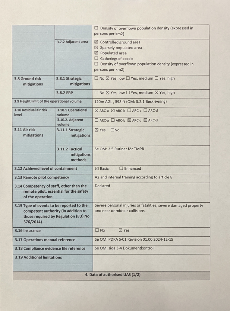 Vi på LP-Airdesign har klassat in vår DJI Inspire 3 i kommande kategori C2 som innebär att farkosten hamnar under 4 kg som gör att vi kan flyga i de flesta aktiva kontrollzoner men med begränsningar och de övriga restriktioner som gäller exempelvis avstånd till annans egendom, människor, fastigheter, mm Upp till 4 kg (A2) – klass C2: Minst 30 m avstånd till icke medverkande personer (5 m med lågfartsläge) och ändå kunna leverera material.